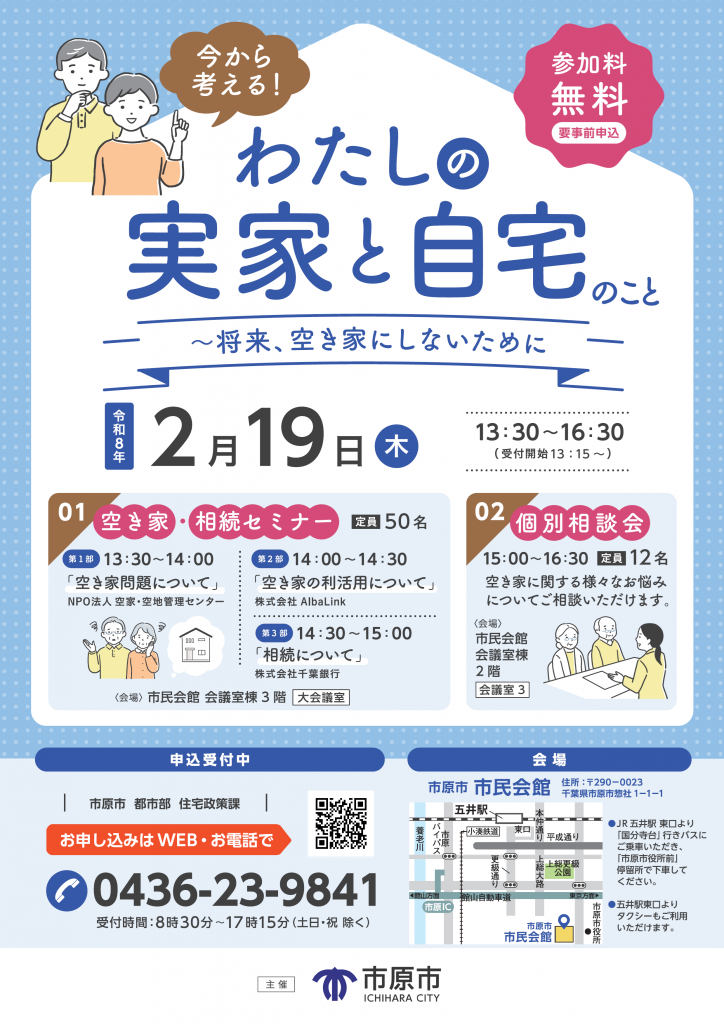 2/19(木) 13:30 市原市民会館 3F大会議室(個別相談会 2F第3会議室)